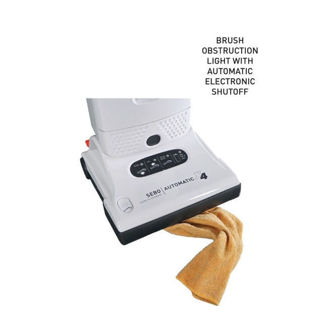 AUTOMATIC X4 is one of the most technically advanced and uniquely easy-to-use vacuum cleaners in the world! The X4 feature 12-inch power head and truly automatic height adjustment! An electronic controller measures the resistance of the spinning brush roller against the floor surface and then signals up or down adjustments, to ensure optimal performance on both carpets and hard floors. The user is also alerted to clogs, a worn brush, or a full bag, and the vacuum automatically shuts off when brush obstructions occur to protect the motor and belts from damage. SEBO’s X also has an instant-use cleaning wand and suction hose, a lifetime belt warranty, tool-free brush roller removal, a 40-foot power cord, three on-board attachments, and excellent pet hair removal.