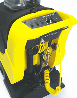 The Marathon 2000 Carpet Cleaner delivers features and performance at a price that is quite simply unsurpassed by the competition. This 20-gallon, self-propelled, forward-operation unit sets a new standard among self-contained carpet extractors. Its 22" recovery shoe, 20-gallon solution taken, and 20-gallon recovery tank clean large extraction areas with ease and efficiency. Productivity, efficiency and sharp design are hallmarks of Tornado's® history and the Marathon 2000 is no exception