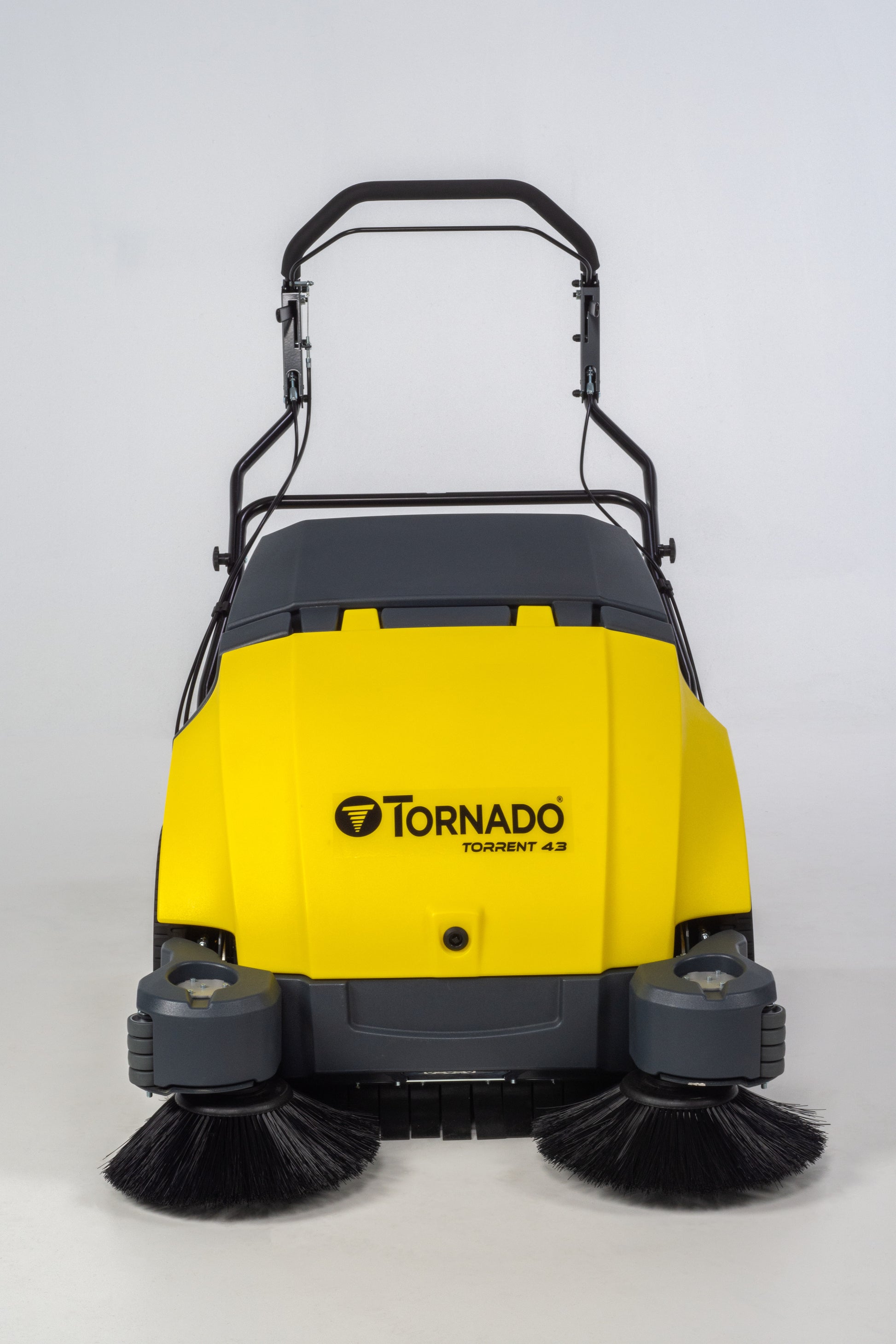 Leave no debris behind with the new Torrent 43 Walk-Behind Battery Sweeper! Raising the bar for sweeper technology, the Torrent 43 features an innovative Tandem Roller System (TRS) with dual counter-rotating brushes that effectively capture everything from large debris to dirt and sand. Maximize productivity and efficiently clean large spaces with the ability to cover over 47,000 sq. ft./hr., two foldout side brooms with an expandable sweeping path range of 35.4”-43” wide, and battery run time of up to 2.5 hours. With oversized 14” front wheels and a strategically positioned rear caster wheel, this sweeper has superior maneuverability and effortless handling in tight spaces and over cracks in pavement, thresholds, and uneven hard surfaces.